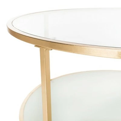 Bring modern elegance to the living room with this two tier round coffee table. Finely crafted with sleek lines and polished glass, its luxurious gold finish makes it a timeless investment. Perfect for a stylish display and serving drinks. Crafted from gold colored metal and metal tubing, this elegant coffee table is able to support up to twenty lbs. The Ivy round coffee table is an ideal choice for Contemporary, Glam, Modern or Transitional style interiors.