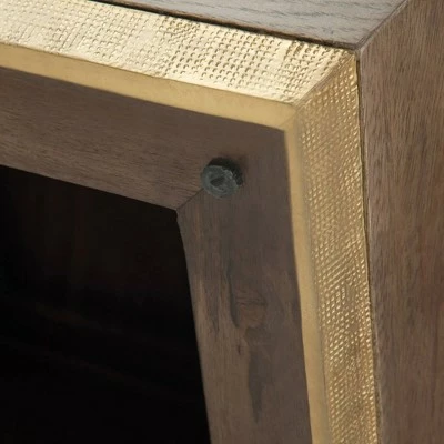 Make a statement with the Gillean Coffee Table. Crafted from solid mango featuring a large square table top with angled geometric lines and brass accent trim. This simple yet dramatic coffee table has a striking presence in any modern living space.