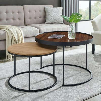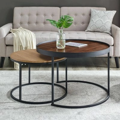 Invite a sophisticated pair of modern 30” Pamela Nested Coffee Tables into your living room by Saracina Home. Warp resistant MDF, durable laminate, and powder-coated steel framing blend into a seamless mix of durable refinement. Incorporate the versatile piece into your den, study, TV room, or home office. Its urban concrete and dark walnut tabletop mix make this set perfect for industrial, modern, and other chic themes. Upgrade your coffee table today and achieve that mature look you’ve been longing for!