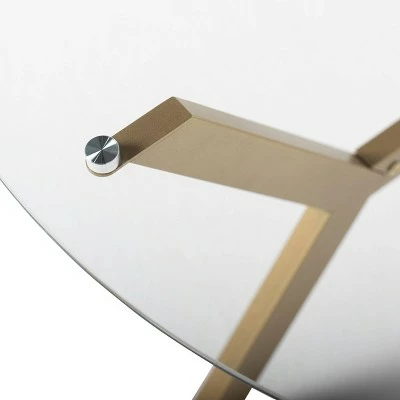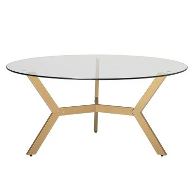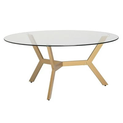 The mid-century modern inspired design of the ArchTech 38” Round, Three-Legged Coffee Table by Studio Designs Home makes it a sleek and elegant addition to your home. The boomerang-shaped legs have a powder-coated finish that resists scratching and corrosion. The thick, clear tempered glass top floats over the angled legs creates an open and airy feel to a small space. The modern, simple lines of this metal and glass cocktail table and handsome finish make it a stylish addition to your living room. It is lightweight and easy to assemble.