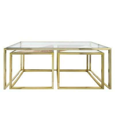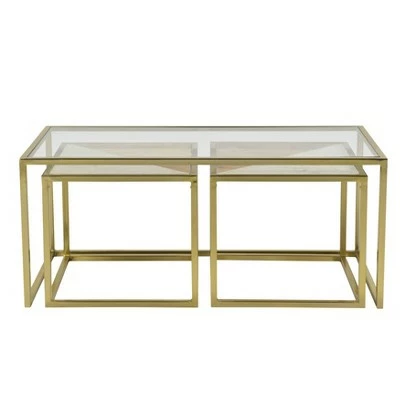 Designed to nest as a full-sized coffee table, these tables have the ability to completely separate, creating versatile pieces to use throughout the living room. The tone of the rectangle frame elevates the design along with the glass top.