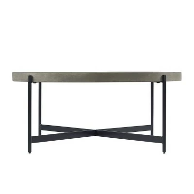 The simplistic design is both chic and functional. The coffee table offers modern, industrial concrete-coated table tops that will give a fresh new look to your living room. Features a tray top design that is fixed in place on a sturdy X-frame metal base. This coffee table beautifully marries form and function and fits perfectly in a living room, family room, or office area without crowding a space or sacrificing style.