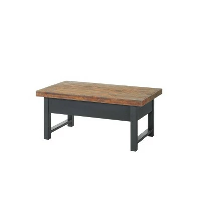 The Pomona collection features the exquisite workmanship of a solid wood top with metal legs that will last for years to come. Each piece is constructed of solid pine wood and finished to have the appearance of reclaimed wood. The reclaimed wood finish highlights natural wood variations such as cracks and knots which add to the piece’s character. This coffee table with a lift top offers a spacious top surface that lifts up and towards you to create a versatile surface that allows you to work on projects, browse on your laptop, or enjoy a snack all while relaxing from the comfort of your own couch. Any item in this collection will add to the rustic industrial style of any space.