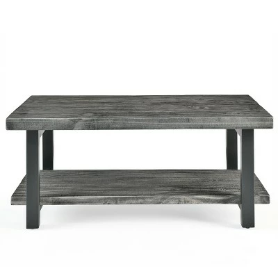 Pomona Coffee Table has a rustic and natural style; measuring 42 inches in width it provides plenty of space for your decorating needs. Its solid Pine wood tops look like reclaimed wood. Knots, cracks and imperfections add to the character of your piece. Strong, powder-coated steel legs make a statement in your living space.