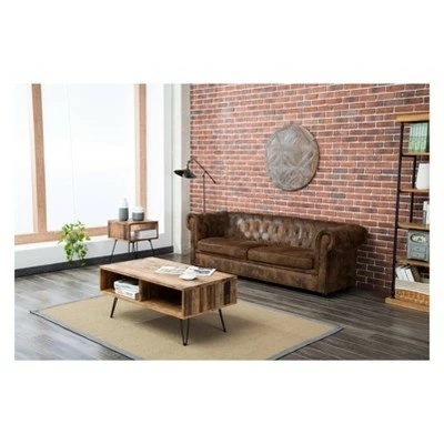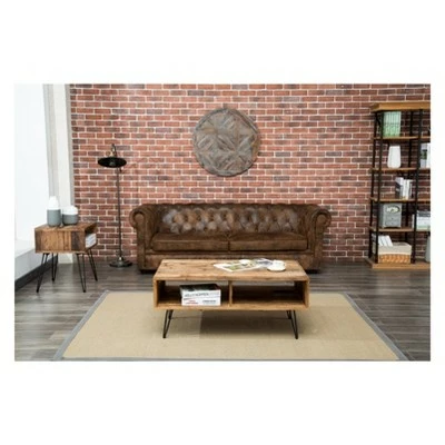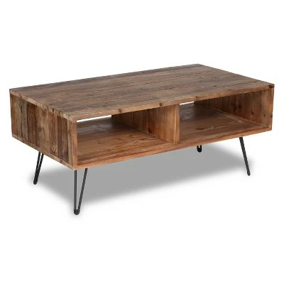 Update the look of your living space with the Turner Coffee Table from Crawford & Burke. This large wood coffee table features a distressed top, complete with two cubby spaces to store magazines, games and more, and black hairpin legs for simple industrial style that complements a range of decor looks. Add a personalized touch when you place fresh flowers or a glass terrarium at the center.