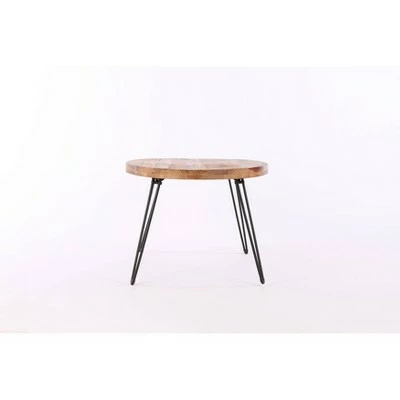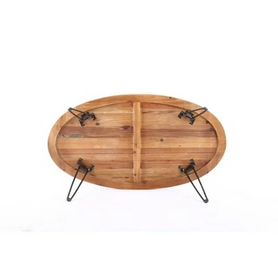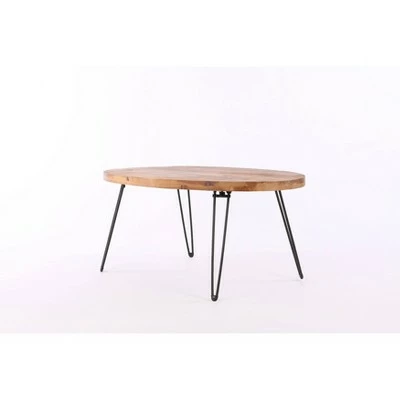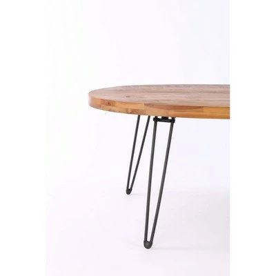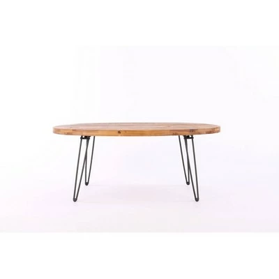 The Hayward Reclaimed Wood and Metal Oval Cocktail Table is a chic way to add functional dĂ©cor to your living space. The oval table top is made from solid reclaimed wood in a natural finish. Its large 44″ size offers plenty of space for books, beverages, electronics and dĂ©cor. Black metal hairpin legs are sturdy and offer a unique, trendy look. This table is perfect for mid-century modern, contemporary, rustic or industrial home dĂ©cor schemas. Minimal asssembly is required.