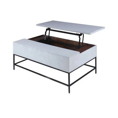 Quality craftsmanship meets industrial style with this Coffee Table, which is sure to accentuate the aesthetics of your modern interior. Incorporated with a lift top opening mechanism, which opens to reveal a spacious storage compartment, the wide and rectangular top allows you to serve snacks and drinks conveniently. Constructed sturdily from the solid wood and metal frame for lasting durability, the metal hinges facilitate easy accessibility to the storage space. The dual tone finish in the hues of white and striking black finish complements the natural brown interior. A perfect center table for any kind of interior, the spacious storage option will help you keep your interior clutter free. Even though it is inspired by transitional style, this Coffee Table is sure to blend with a variety of decor settings without compromising the integrity of interior.