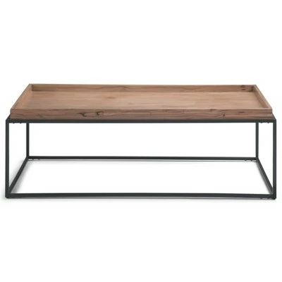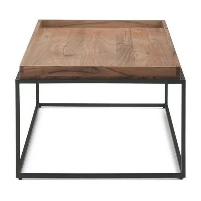 The Avila Tray Top Metal Collection brings a rustic flair to a strong mid century modern industrial sensibility. The open, angular metal frame with a natural gray black finish is topped with the natural beauty of an Acacia tray. The Avila Tray Top Metal Coffee Table is a large rectangular piece that is both practical and beautiful. Its large Acacia Wood tray top is fixed in place but is great setting to serve food or show items. The Avila Coffee Table can be used in your living room, family room or basement. Although industrial in style, this functional piece can blend seamlessly with many different styles in an eclectic setting.
