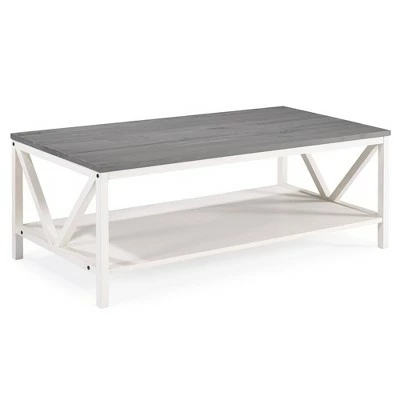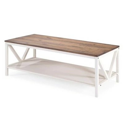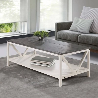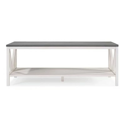 Love cottage looks and coastal vibes? Why not bring home a table that does both? Introducing Saracina Home’s Farmhouse Coffee Table. This two-toned table is constructed from solid pine wood and high-grade MDF. Its open box frame offers lower storage space and is accented with pretty, inverted A-frame side detailing. This trestle frame is what makes the coffee table such a versatile piece. Add nautical decor to evoke its coastal look, or embrace some country flare to unleash the full, rustic, farmhouse design.