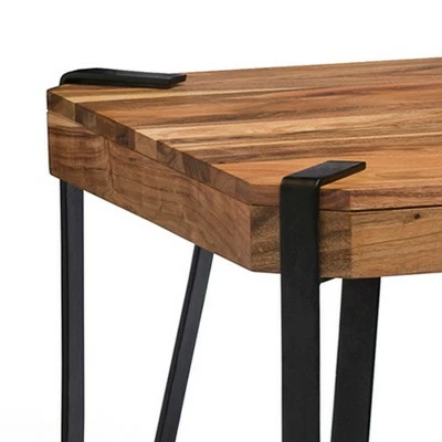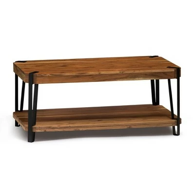 Industrial-styled Ryegate features solid wood tops with wood veneers. These tables make a strong industrial modern statement in your living space. Each tabletop is unique; no two tops will be exactly alike. Constructed of natural acacia wood. Each of our live edge products includes nylon floor protectors. The knots and cracks add to the wood’s character. A clear natural finish enhances the beautiful features in each piece of wood. The Coffee Table will be the signature piece and complement the decor in your home. This beautiful piece of furniture will make a statement in your living space.