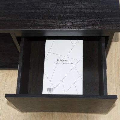 - Features: Storage, Cut-Out Design, Shelving, Drawer(s), Wood Legs, Fixed Shelves