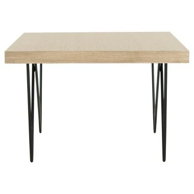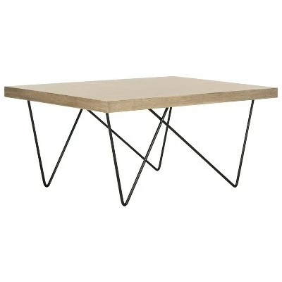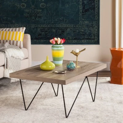 Inspired by a late French designer known for her spin on modern classics, this contemporary coffee table is a favorite of architects. Its elegant asymmetric style is perfectly achieved with a pairing of slender elegant iron legs and a light gray palette. The asymmetrical legs around the Amos coffee table adds a modern touch to the simple design. Crafted from MDF wood and black iron, this coffee table is able to support up to a hundred pounds. The Amos table is the perfect choice for Contemporary, Mid-Century, or Modern style interiors.