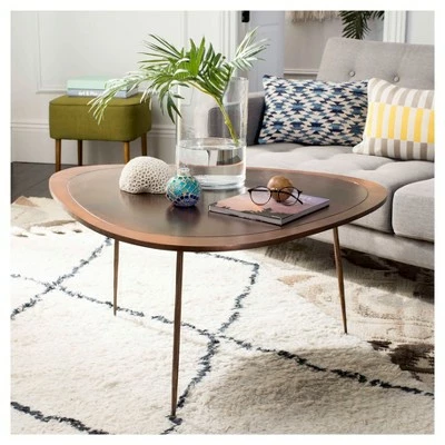 Inspired by the iconic furnishings of a legendary Swedish architect, this contemporary tripod coffee table is a modern heirloom. The retro chic metallic warmth of its antique copper finish and rich materiality of its top lend character to any interior. This simple yet stately piece of home furniture will prove to be a lovely addition to your living room with is shapely design. Constructed from iron, this sturdy table is able to support up to fifteen pounds. The Ayla coffee table is the ideal choice for Glam, Mid-Century or Modern style interiors.