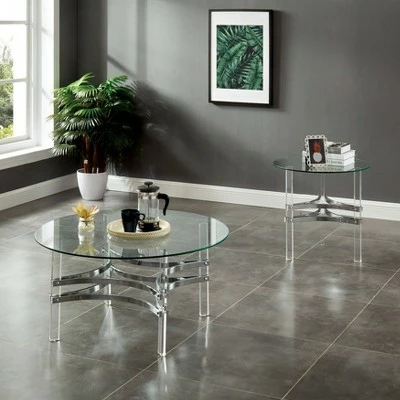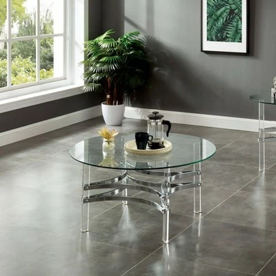 Add a fresh, modern accent to your living room decor with this stunning, glass top coffee table. This round coffee table blends clear acrylic legs with chrome embellishments and a smooth, clear glass top for an updated design that’s crafted to catch the eye. This stylish design makes a truly intriguing upgrade to a contemporary living space.