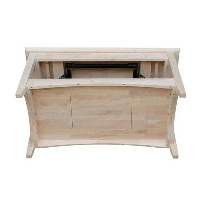 For those who appreciate high quality wood furniture with an elegant look. International Concepts home furnishings will complement any décor. Made from solid parawood. Ready to assemble. Includes one shelf. Size of shelf is 34.6″ x 21.1″. Distance from apron to top of shelf is 8.1″. Distance from floor to bottom of shelf is 3″. Includes raised top. Top can be raised 10″. When top is fully extended, it protrudes approximately 13″ from center and locks in place.