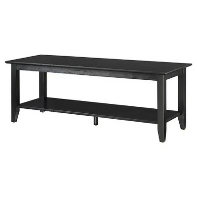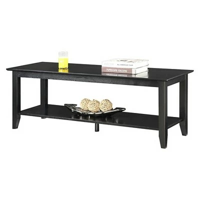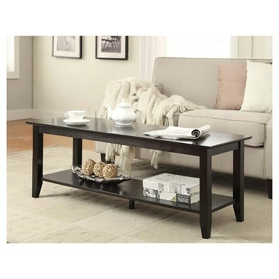 The American Heritage Coffee Table with Shelf brings more than convenience to your home. This accent table has a classic look and profile that makes it fit into your existing decor. The long and low profile gives this wood coffee table the right dimensions to make it a must for entertaining and daily use while the bottom shelf has enough space for added storage.