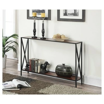 Crisscrossing supports in steel and lustrous, durable melamine shelves make the Tucson Accent Furniture Collection from Convenience Concepts an attractive option. These accent tables have plenty of display and storage space for books and art.