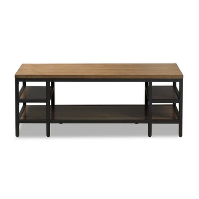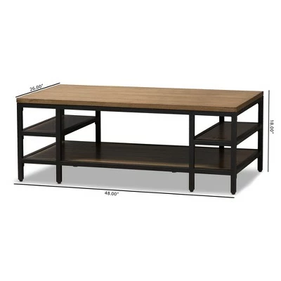 Rugged construction and attention to visual detail make our Caribou metal and wood coffee table a standout piece of modern furniture. Distressed ash-veneer wood top and shelf join with rustic iron metal in antiqued textured black finishing form a design that’s a fantastic representation of a modern approach that also speaks of timelessness. Contrasting panel and wood-grain directions enhance the eye appeal. Made in China, the occasional table requires assembly.