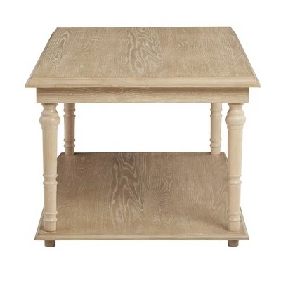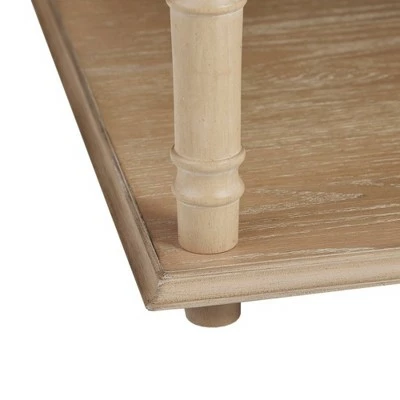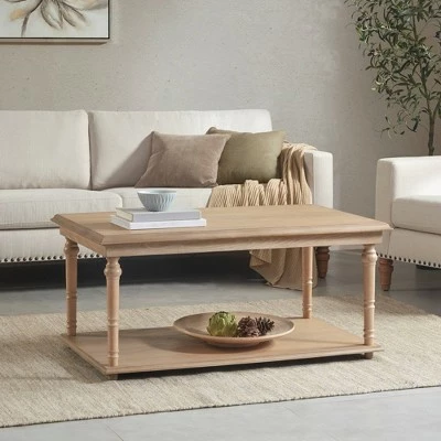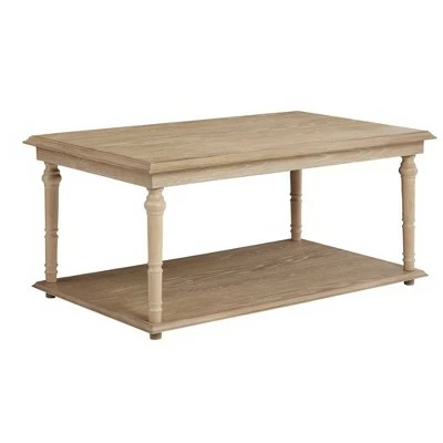 Update your living room with the charming farmhouse style of the Caryn Coffee Table. This rectangular coffee table features a natural wood finish with solid wood turned legs that add an elegant touch to the country-inspired look. A lower shelf provides plenty of space to store or display your magazines and other essentials. Assembly is required and a tool is included.