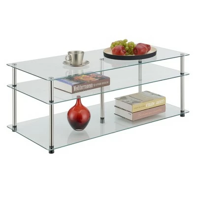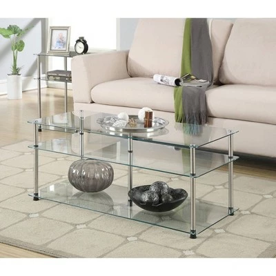Designs2Go Classic Glass 3 Tier Coffee Table by Breighton Home is the perfect complement to any living room decor. Featuring an open concept modern design that provides 3 spacious glass shelves for decoration, collections or art objects. No tools need for assembly as the stainless steel poles twist together with ease and ensure durability. Surely will provide years of enjoyment