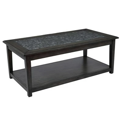 This cocktail table features a contemporary design with a casual style to give your home an elegant look. Constructed of Asian hardwood, this table consists mosaic tile inlay that creates a real beautiful contrast to the dark gray finish wood. This table features an unmatched design with a lower open shelf beneath the table for storage. This table can not only serve the regular purpose but will also offer the space to store newspaper, magazines and other reading materials. Dimensions: 48X26X19