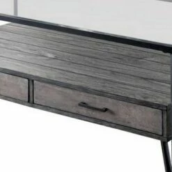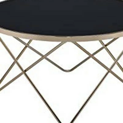 Update your living room with a functional art piece. This coffee table uses a mid-century inspired base finished in champagne and supports a framed black glass top. The finish and black glass make for a sophisticated look.