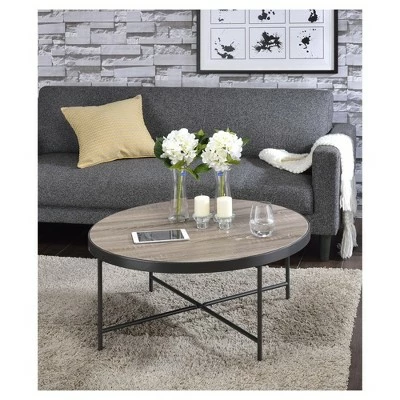 Add surface space without sacrificing your light and airy aesthetic with the Oak Gray Coffee Table from Acme Furniture. The metal frame features a gray finish, creating a soft look, especially when paired with the wood-look tabletop. This round coffee table is the perfect spot to rest a vase of flowers, a collection of books or a glass of wine or cup of tea as you sit back after a long day.