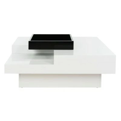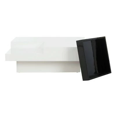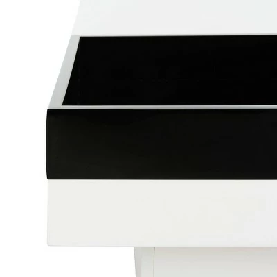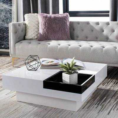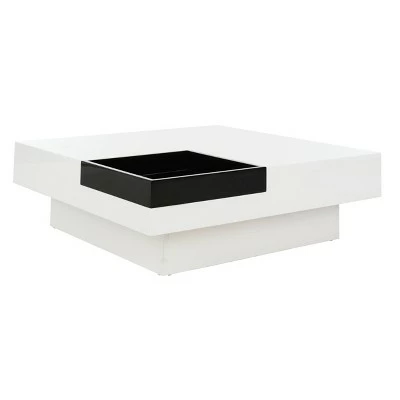 A graphic and powerful statement in contemporary living rooms, the white lacquer Wesley coffee table is brimming with Mid-Century influences. Resting on a clean lined plinth base, it comes with removable black tray that tucks into one corner. Crafted from black and white MDF wood, this sturdy table is able to support up fifty five lbs. Removable black colored tray is included. The Wesley coffee table is a great choice for Glam, Mid-Century or Modern style interiors.