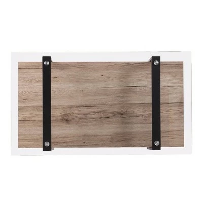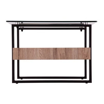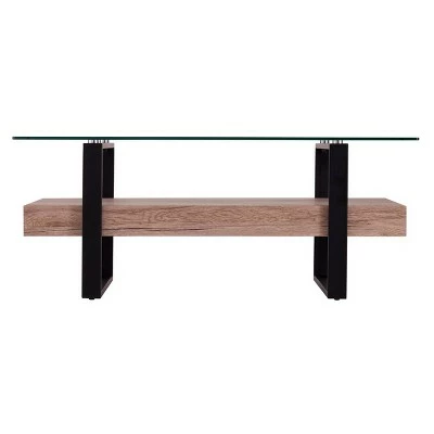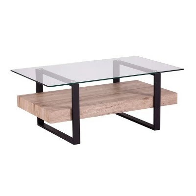Add a hint of rustic texture to your modern design with the Aiden Lane Craygrove Farmhouse Cocktail Table. A sleek glass tabletop provides the perfect display space for magazines or family photos, while the convenient lower shelf neatly tucks away books or board games. Sturdy metal legs create cool contrast against the warm wood grain, highlighting a contemporary farmhouse feel in your living room or open concept space. Whether you’re relaxing at home or entertaining guests, this rectangular coffee table keeps your country style chic.