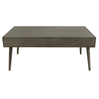 If you are looking for an affordable way to modernize your home with mid-century flair, look no further, this two drawer console table will fill the bill! This uniquely designed two drawer coffee table encompasses mid-century modern design by exuding clean lines, a stylish finish, and simple round hardware. Features include hardwood solids and veneer construction, two storage drawers and tapered legs. The ideal cocktail table to provide transitional modern styling and functionality to your living room or family room. Size: 41.75w 23.5d 17h Manufactured in China. Ships Small Parcel. Assembly Required.
