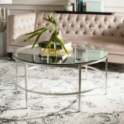 - Antique silver cocktail table with glass top