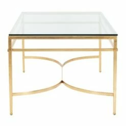 A combination of natural beauty and world-class style, this contemporary coffee table was inspired by the furnishings in latest design hotel in Oslo. Finished in shimmering gold leaf, its elegant, streamlined aesthetic makes a bold statement in any space. The Edythe Coffee Table is a fabulous addition to those with modern, contemporary, and transitional decor.