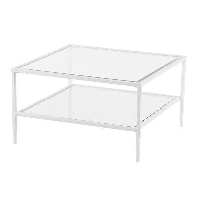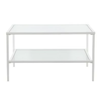 Add sleek style to your living room with the Emerson Square Metal/Glass Open Shelf Cocktail Table from Aiden Lane. A metallic frame borders a tempered glass shelf, providing a home for coffee table books or family photos. Spacious glass tabletop offers a home for your morning java, or your favorite evening tea. Minimalist design meets contemporary class when you upgrade your living room look with this modern glass coffee table with double decker shelves. Take refuge in soft cozy textures while clean lines and angles create a well-balanced design. From intimate seating to ambient lighting, Aiden Lane transforms your house into a home.