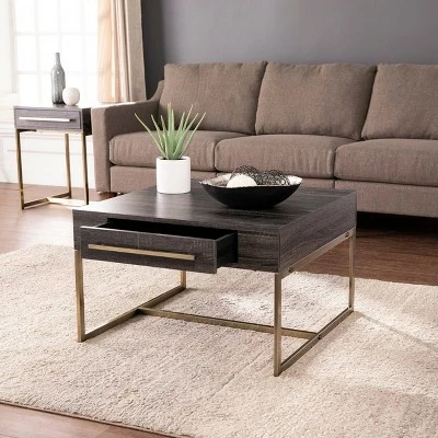Versatile storage comes alive with the Aiden Lane Frondi Square Cocktail Table. Slim metal legs highlight a sleek, modern design, while the small space friendly footprint slides neatly in front of your living room sofa or pair of armchairs. Tuck remotes or drink coasters into the convenient storage drawer, and keep your favorite book or cub of coffee within reach on the spacious tabletop. Give your living space a contemporary upgrade when you add this two-tone coffee table.