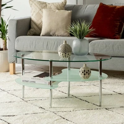 Want a splash of Mid-Century modern style? Want it in your living room, office, or bedroom? Look no further than Saracina Home’s Glass and Metal Oval Coffee Table. This tiered table comes with three tempered glass shelf levels; two are frosted while one is clear. Picture displaying your best décor on the coffee table’s eccentric floating shelves. And make all your friends wish they had the same unique style as you. Use this versatile unit as a coffee table, magazine table, or cocktail table.