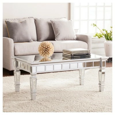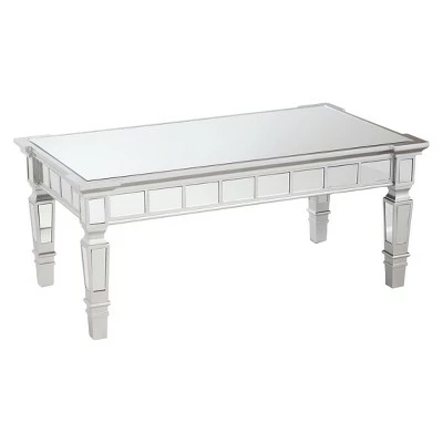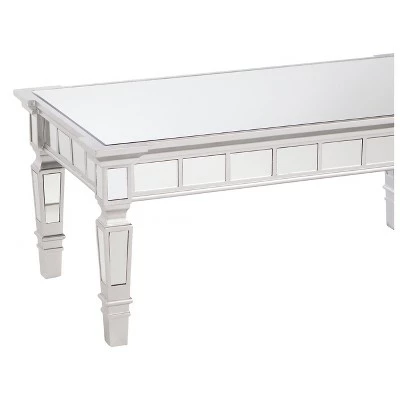 Entertain in contemporary style with the Aiden Lane Glenrose Glam Mirrored Rectangular Cocktail Table. A spacious tabletop offers plenty of space to rest cocktails and party appetizers, while an all-over mirror design keeps your living space looking classy. Four tapered legs create a simple, functional base, sliding neatly alongside your sofa or accent chair. Host guests in modern flair with this mirrored coffee table in your living room, den, or open concept space.
