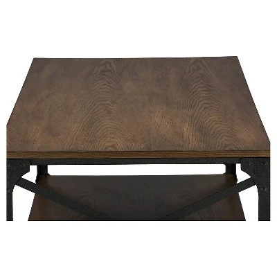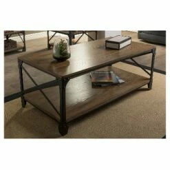 Pairing iron metal frame with distressed finishing wood board, this cocktail coffee occasional table is a striking centerpiece for your living room. Rustic oak wood grain textured top and the distressed finishing lend a vintage look to the thick table top. Combined with the metal frame and the classic detailing of vintage industrial furniture, the table is solid and sturdy. Bold in scale and rich in character, a versatile cocktail coffee table is perfect for family gatherings or game nights. Made in China, the table requires assembly. Dimensions: 19.00″ High x 48.00″ Wide x 24.00″ Long