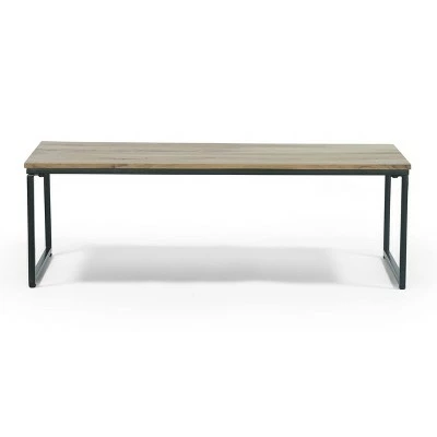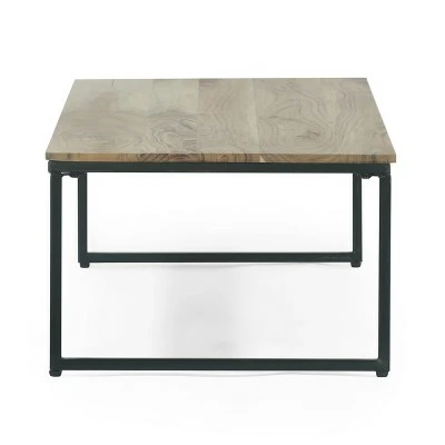 Pair your indoor seating with a centerpiece that was made to bring your home a sophisticated charm. Featuring a beautifully rich acacia wood top and simple metal frame, our coffee table is the perfect place to display a vintage vase of flowers, framed photos, or an artful array of books. This handcrafted selection is supported by a refined sled leg frame, providing your living room a sleek modern industrial vibe. This coffee table is solid, stylish, and will feel perfectly at ease in any home.