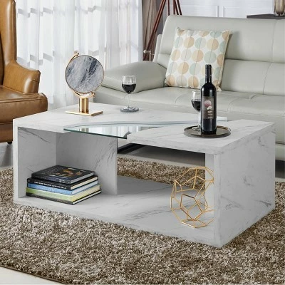With most modern homes, a sense of comfort is lost to style. This coffee table breaks that mold. A marble-like framework with a curved tempered glass insert brings elegance to natural elements. Like an iced-over river, this construction captures beautiful curves. The table also features a spacious open base to store your essentials while enhancing its unique form.