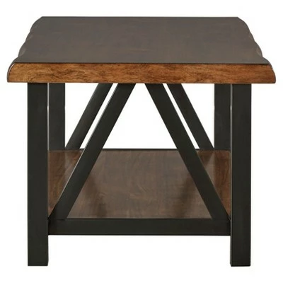 Update your space with the rustic style of the Hartwell Cocktail Table. This fantastic piece features a manufactured live edge table top that showcases elegant wood grain detail. The table top and lower shelf are supported by black metal supports with a clean design. Pair this with additional pieces from the Hartwell Collection for a designer inspired look.