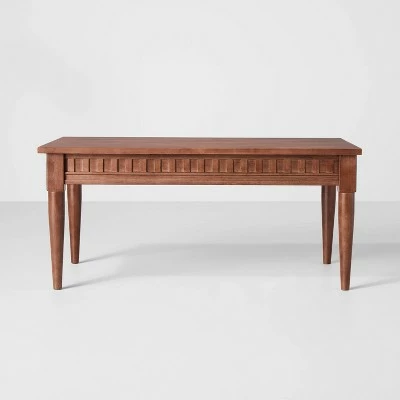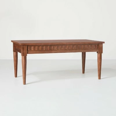 Tie your living room together with this warm and inviting Turned Leg Wood Coffee Table from Hearth & Hand™ with Magnolia. Secured atop 4 point-turned legs for better stability, the coffee table’s traditional silhouette in a dark brown finish will blend effortlessly with any decor style and color palette. Plus, a spacious tabletop provides the perfect platform to serve mouthwatering snacks, drinks and more. Place it in front of your sofa styled with coffee table books, decorative coasters and a vase of greenery to create a charming look that’ll perfectly complement the rest of your home’s decor.