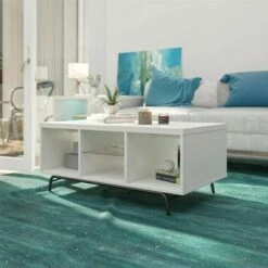 - The Table requires minimal assembly and 2 adults are recommended for assembly. The Coffee Table can hold up to 60 lbs. Once assembled, the Coffee Table measures to be 17.83”H x 35.43”W x 35.43”D
