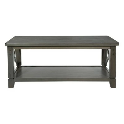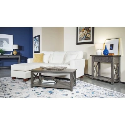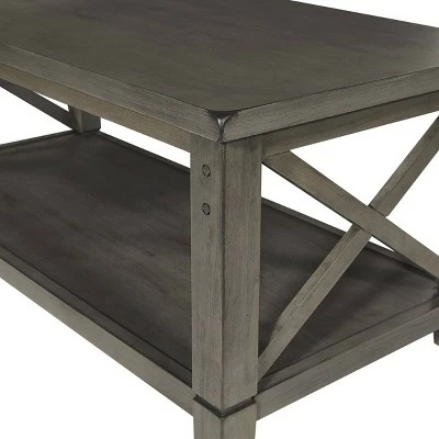 You can’t help but love the rustic farmhouse design of the Hillsboro Collection from OSP Home Furnishings™. This attractive collection features X-side panels that add both charm and support. A warm, distressed antique gray finish highlights these solid-wood furnishings while complementing your home décor. Provides great additional storage as well!