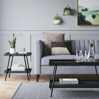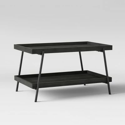 This Hillside Coffee Table from Project 62β’ has a second shelf that adds storage to your space and is perfect for books, knickknacks and more. The light-washed wood finish and clean lines are easy to coordinate with any home decor, while its ingenious raised edges prevent items from rolling or falling off the top. You can pair this modern coffee table with a white area rug to tie together your living room, or contrast it using darker furnishings to suit your taste.