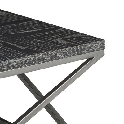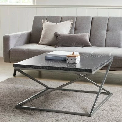 Bring a bold and striking update to your living room with the Mila Coffee Table. This square coffee table features a patterned veneer top with a brushed antique silver metal base to create an eye-catching modern look. With its contemporary design, this coffee table is sure to elevate your home decor. Assembly is required and a tool is included.