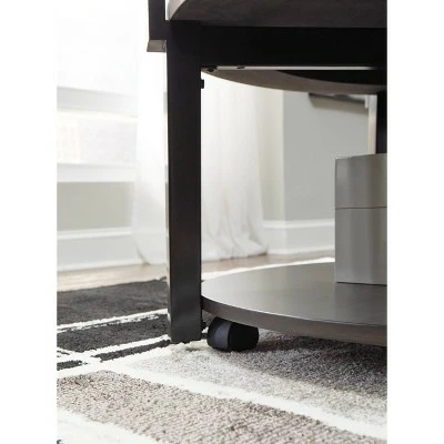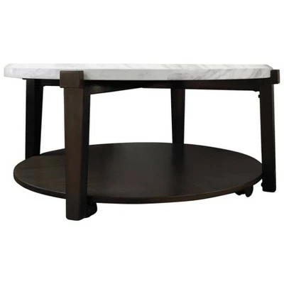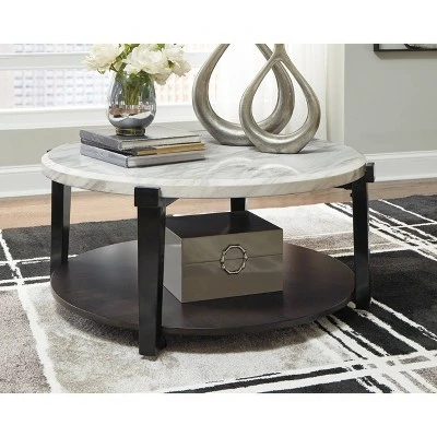 Whether your style is cozy cottage, modern minimalist or somewhere in between, you can put an end to your quest for the ultimate coffee table. The character-rich piece you’ve been searching for is yours for the taking at a price to put you at ease. Round out your seating area with this elegant coffee table in a contemporary two-tiered round design. Clean-lined profile is simple, yet striking—while its faux Carrara marble top is anything but ordinary. Casters on the legs provide added flexibility. Signature Design by Ashley is a registered trademark of Ashley Furniture Industries, Inc.