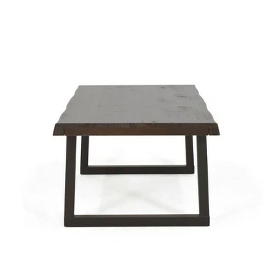 The Jennings Cocktail Table presents a rustic modern style in a two-tone finish that warms up any room. Sturdily constructed with a solid pine top with a live edge in a rustic, distressed cherry finish and a solid pine ebony finished base. Also available in this collection is the matching end table (purchase separately). Your purchase includes one Cocktail Table.