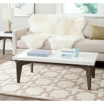 The smooth white lacquer top of the low-slung Joseph coffee table appears to float on metal posts that connect it to a base of dark brown wood grained legs. Graphic and sleek, the surface of this coffee table is easy to clean and great for entertaining. The flat, bright top serves as a perfect base to be adorned – furnish with your favorite coffee books, flowers, or use conveniently for a tray of tea. The Josef coffee table is a modern and contemporary addition to the room.