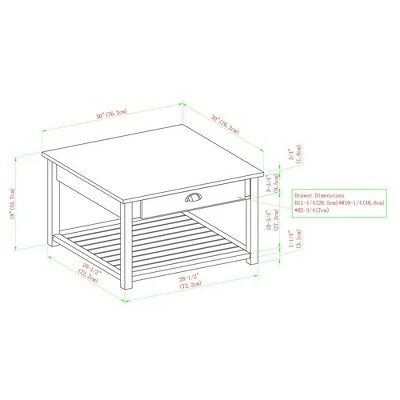 - Compartment 1 Type: Drawer (1): 3.75 Inches (H) x 28.5 Inches (W) x 28.5 Inches (D)