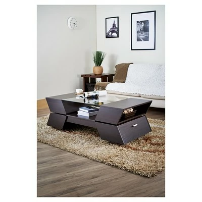 The Homes: Inside + Out Lucas Modern Coffee Table is an inspired contemporary piece with appeal and functionality. A veneer frame finished in white or espresso gives this table a sleek look. An open alcove in the table’s middle is highlighted by a glass table top, making this space ideal for display. Covered compartments on the table’s sides provide room to store reading materials and more. The Homes: Inside + Out Lucas Modern Coffee Table is a modern piece that will bring any space up to date.